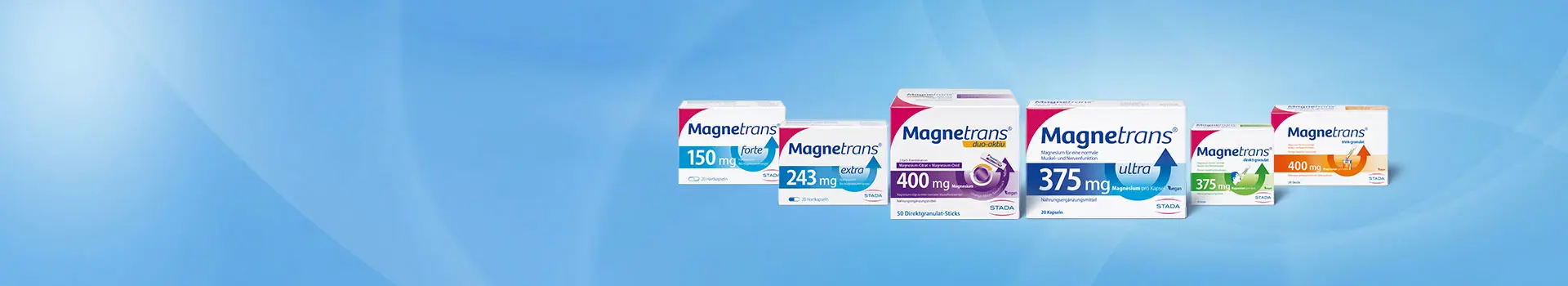 Bewährte Hilfe bei nachgewiesenem Magnesiummangel, wenn er Ursache für Muskelkrämpfe ist, bieten die Arzneimittel Magnetrans® forte 150 mg oder Magnetrans® extra 243 mg.